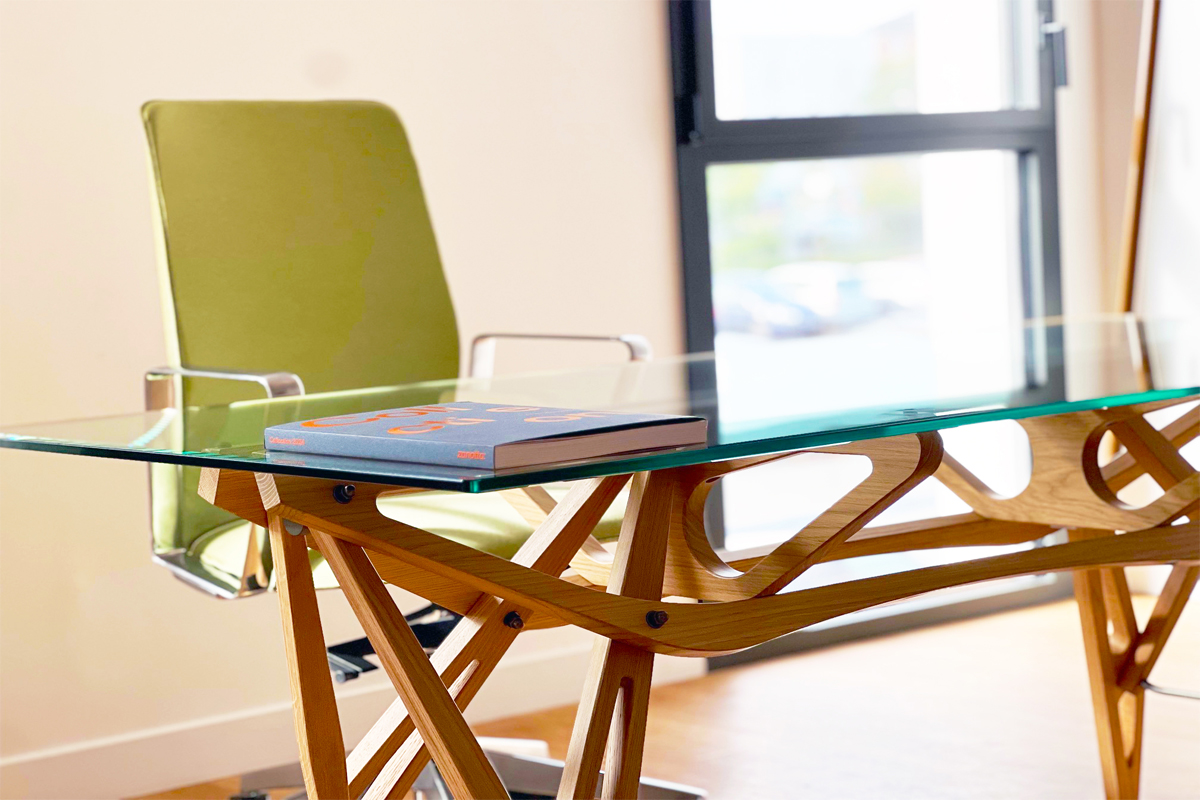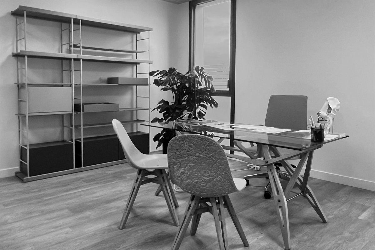 Le cœur de l’aménagement repose sur des pièces de mobilier haut de gamme soigneusement sélectionnées. Le bureau REAL de Zanotta, avec son design minimaliste et ses finitions impeccables, s’impose comme une pièce centrale, offrant praticité et raffinement. Associé au fauteuil ergonomique Forma 5 modèle Allure, il garantit un confort optimal pour le praticien, même lors de longues heures de consultation.