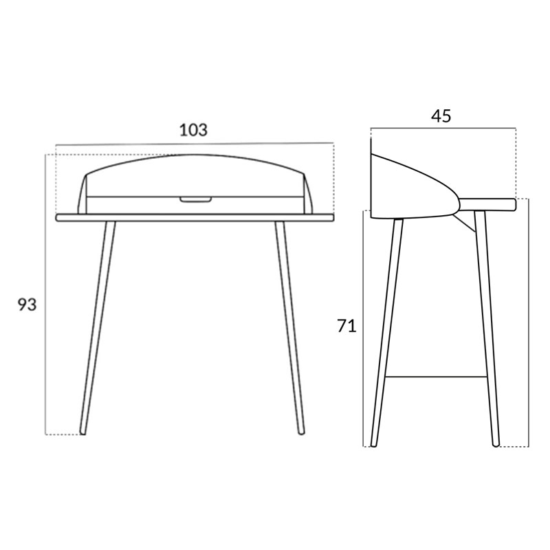 - Dimension : L.103 x P. 45 x H. 93 cm / Hauteur plateau 73 cm