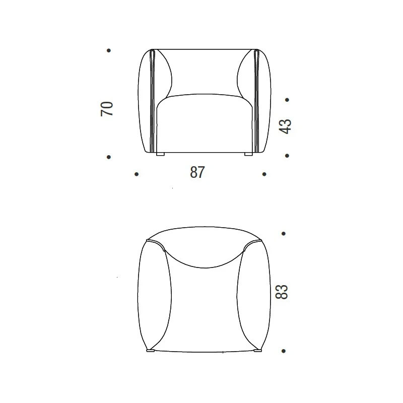 - Dimension : L 87 x Prof. 83 x H 61 cm – Hauteur assise 43 cm – Profondeur assise 55 cm
