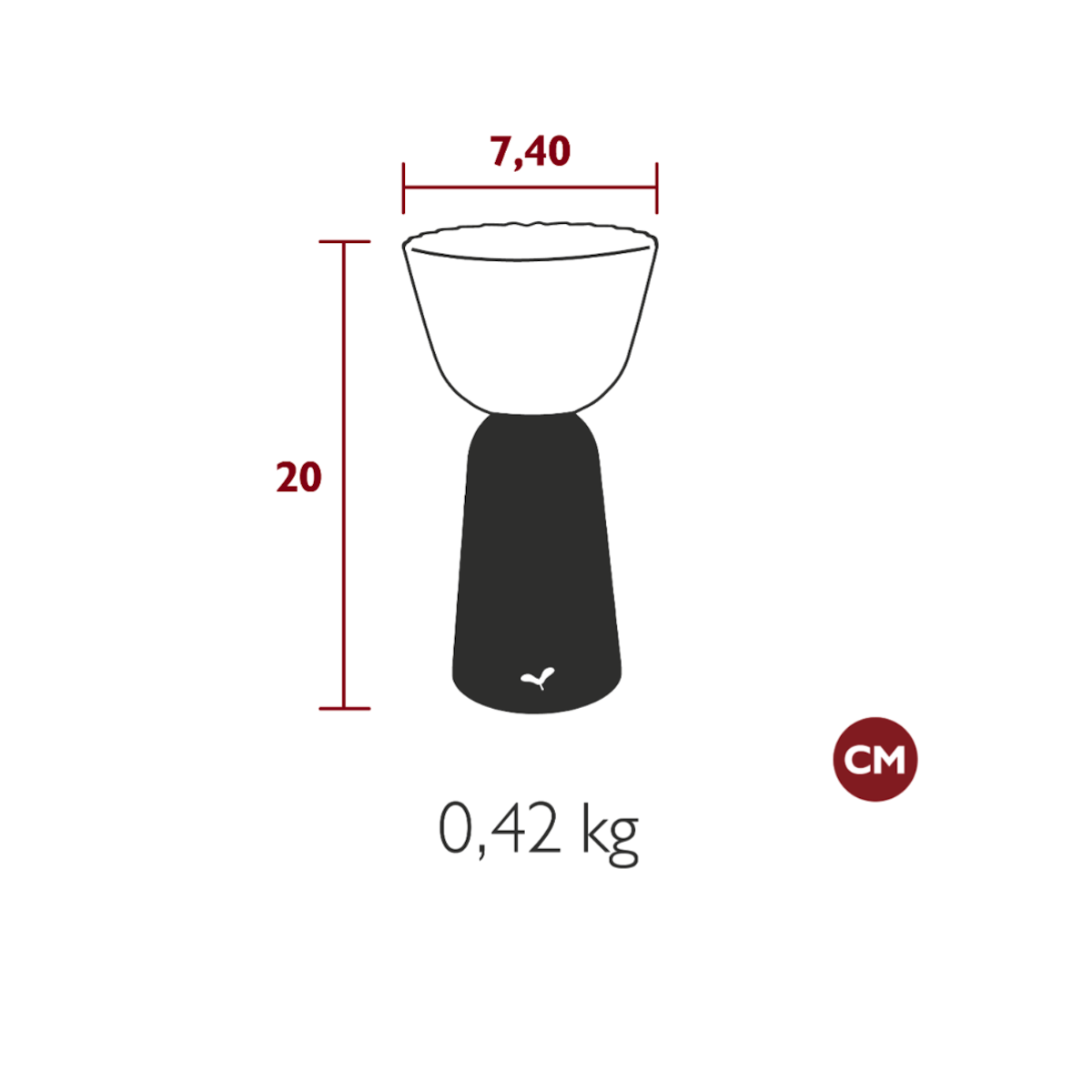 - Dimensions : Ø 7,4 x H 20 cm