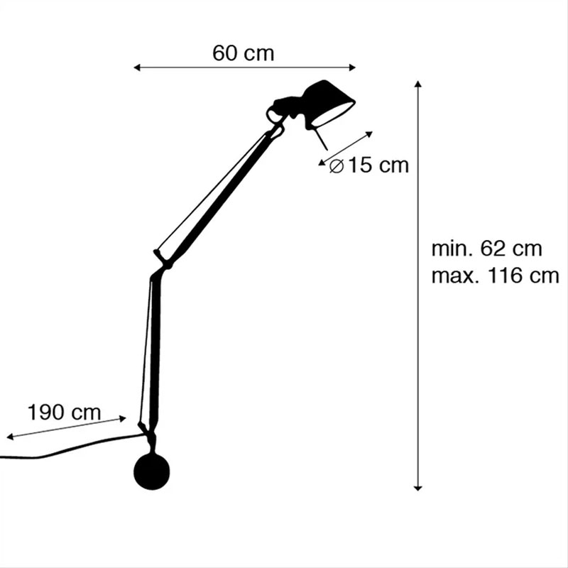 Longueur d’extension maximale: cm 106 - Sources non incluse : Ampoule halogène 70W (E27) – Interrupteur sur le diffuseur