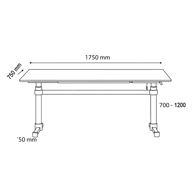 - Dimensions : 1750, P : 750, H : 700 – 1200 mm