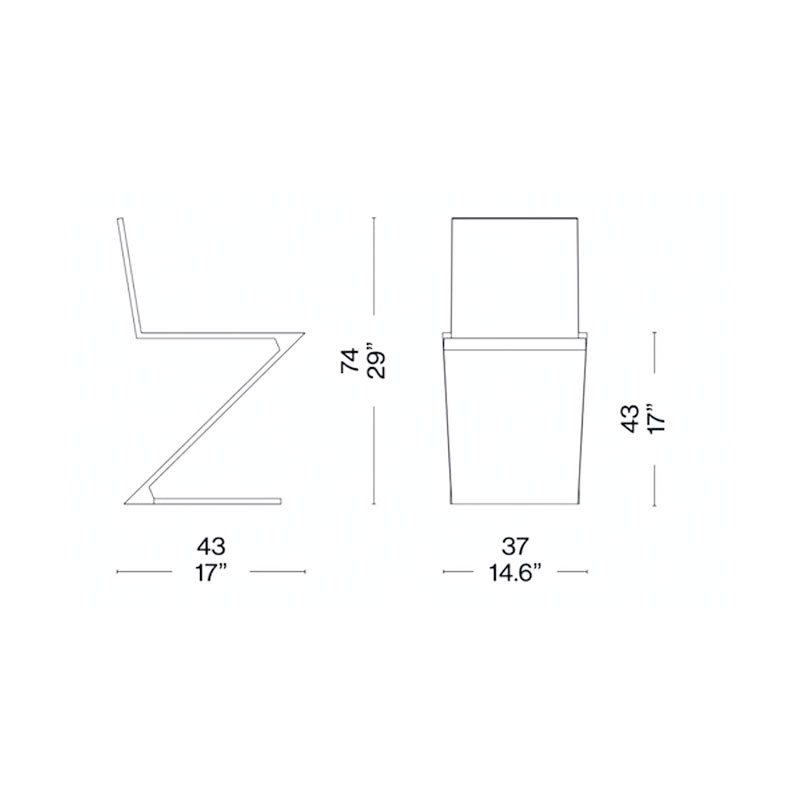 La chaise Zig Zag, conçue par le visionnaire Gerrit Thomas Rietveld et éditée par Cassina, demeure une véritable icône du design moderne. L’une des premières assises en porte-à-faux, elle s’impose par ses quatre plans continus, sculptés dans une dynamique presque organique, qui semblent défier la gravité avec une élégante instabilité maîtrisée.